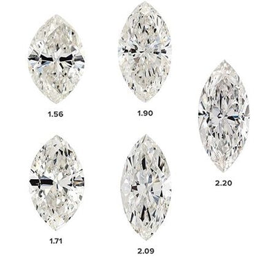 • When you are shopping for marquise diamonds, the first factor that you’ll want to consider is the length to width ratio: a comparison of how round or elongated the marquise shape is.