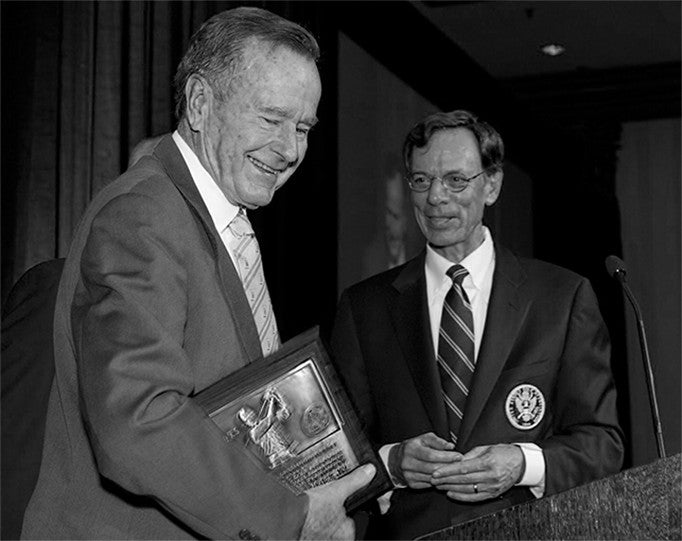 President George H.W. Bush, with former USGA president Jim Vernon at the 2008 USGA Bob Jones Award recipient.