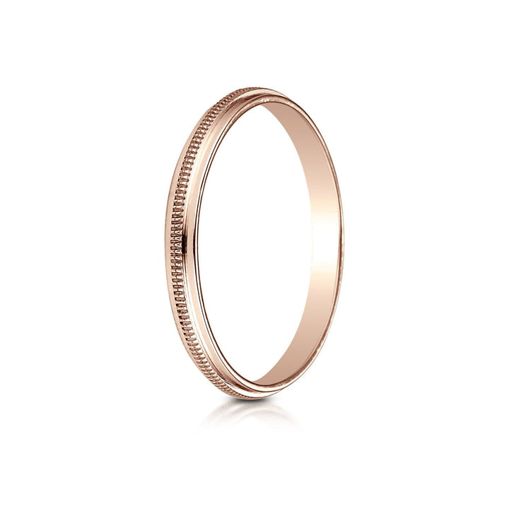 แหวนทองคำชมพู 14 กะรัต ขนาด 2 มม. นี้มีศูนย์กลางแบบมิลเกรนเพื่อรูปลักษณ์ที่มีสไตล์อันละเอียดอ่อน..