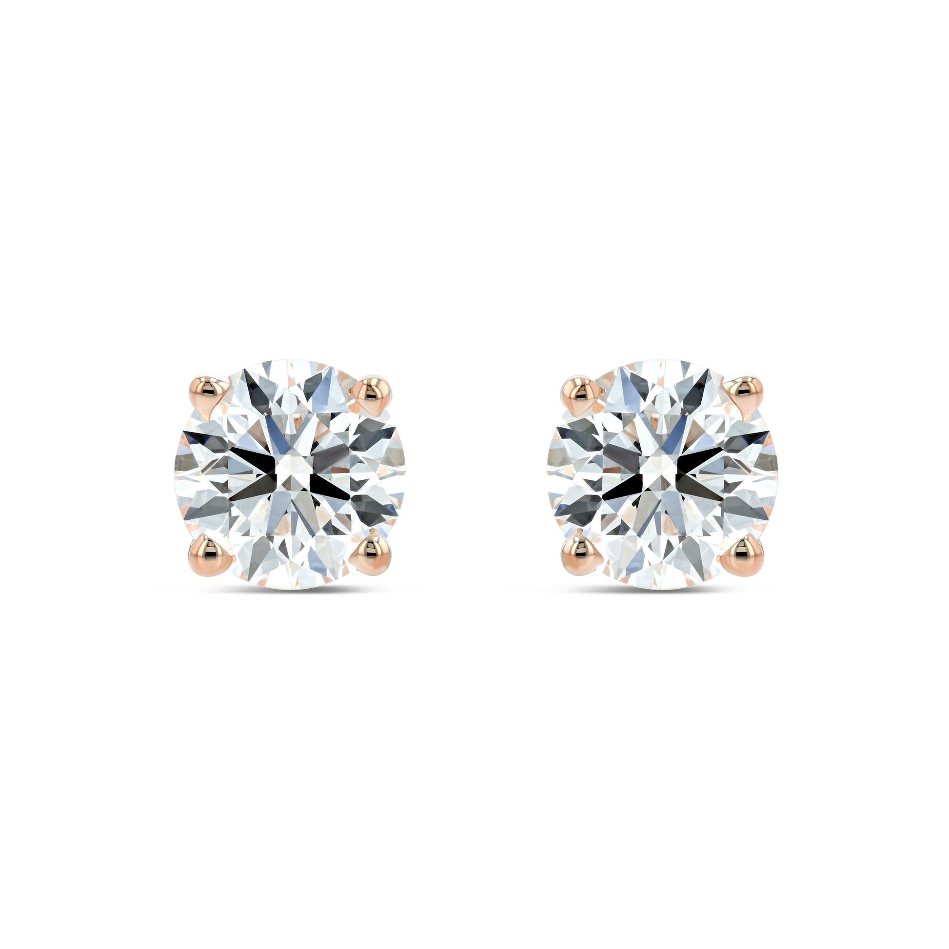 ต่างหูเพชรทรงกลมแบบ 4 ขา 14k สีทองกุหลาบ (1.06 Ct. T.w., ความชัดเจน Vs1-vs2, สี F-g)