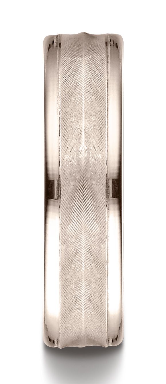 แหวนออกแบบแกะสลักขนาด 6 มม. แบบ Comfort-fit ทำจากทองคำ 14 กะรัต มีลวดลาย Chevron ที่ซับซ้อน พร้อมขอบกลมที่ขัดเงาอย่างสูง เพื่อรูปลักษณ์ที่ทันสมัยและมีความซับซ้อน