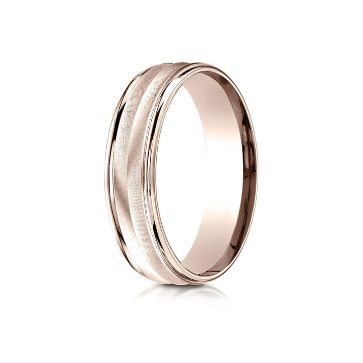 แหวนทองคำชมพู 14k ขนาด 6 มม. ดีไซน์เชฟรอนแบบสบาย ขอบกลมขัดเงา ดีไซน์แกะสลัก
