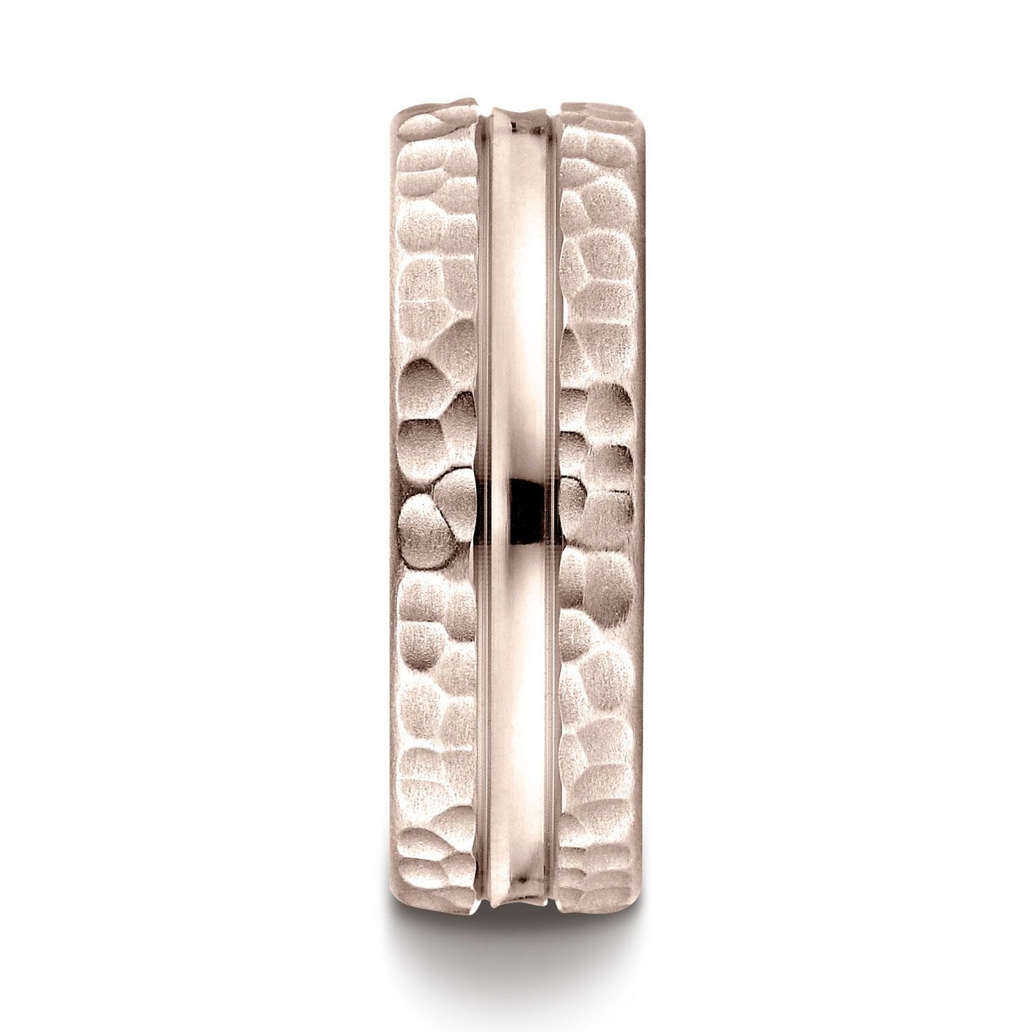 แหวนทองคำชมพู 14k ขนาด 7.5 มม. แบบสบาย ฟินิชแบบตีให้เรียบ ดีไซน์ตัดกลาง