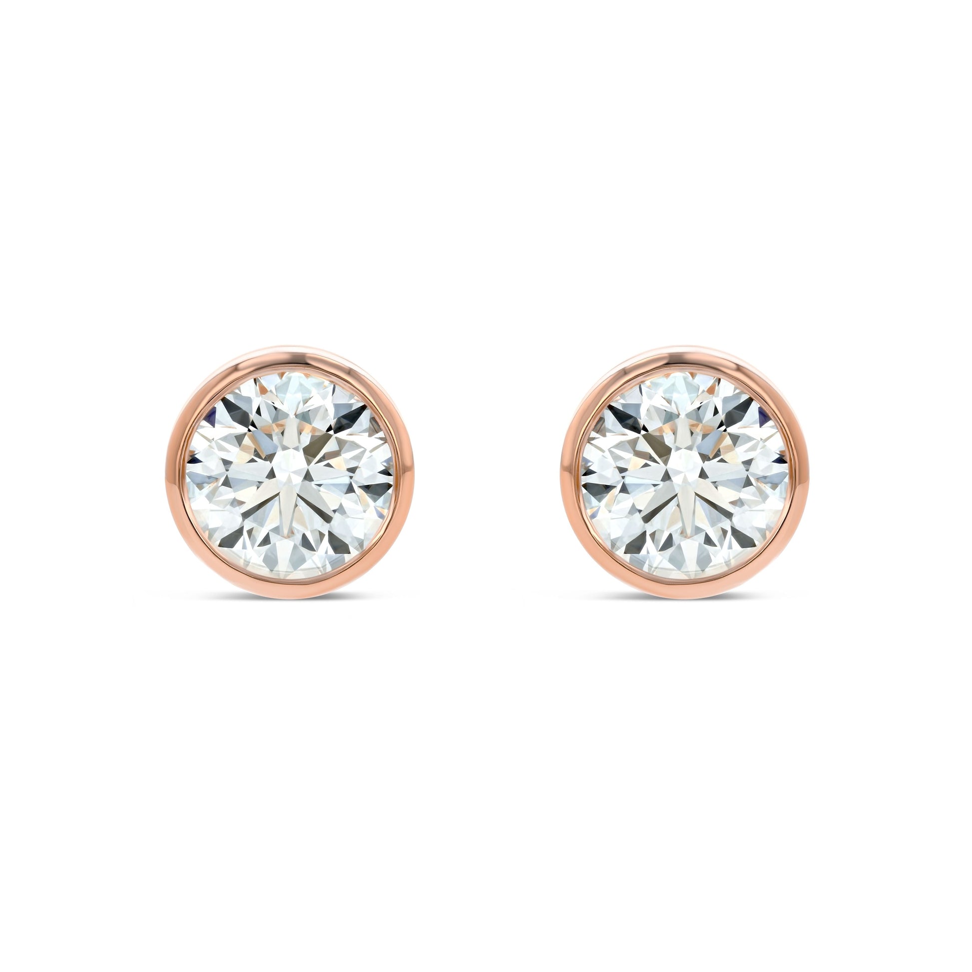 ต่างหูเพชรกลมเจียระไนแบบเบเซล 14k สีทองกุหลาบ (0.52 Ct. T.w., ความชัดเจน Si1-si2, สี H-i)