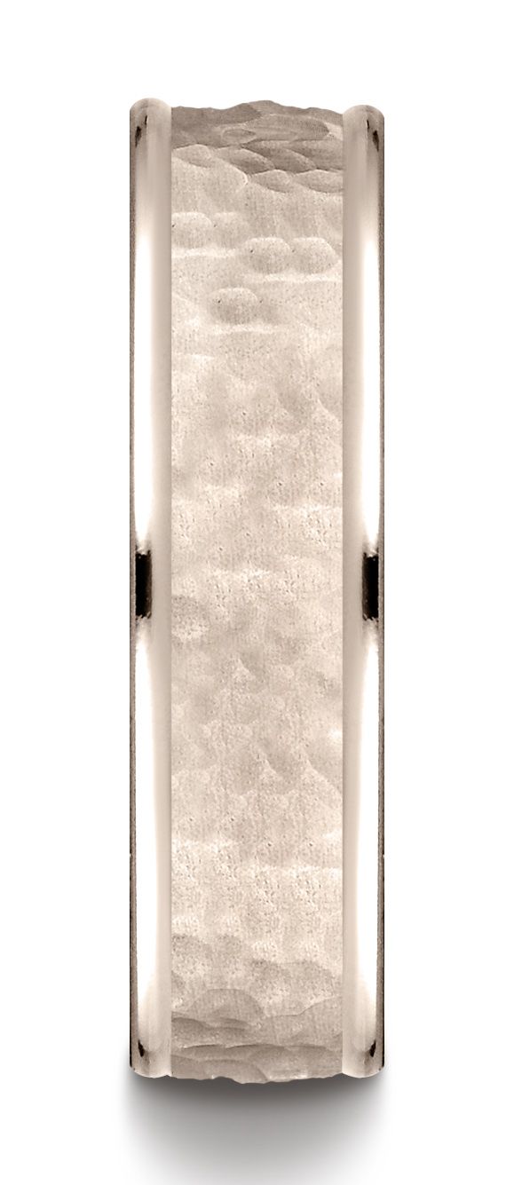 แถบความสะดวกสบายขนาด 6 มม. สีโรส 14 กะรัตที่มีความซับซ้อนสูงนี้มีขอบที่ขัดเงาและกลางที่ตีให้เป็นลาย