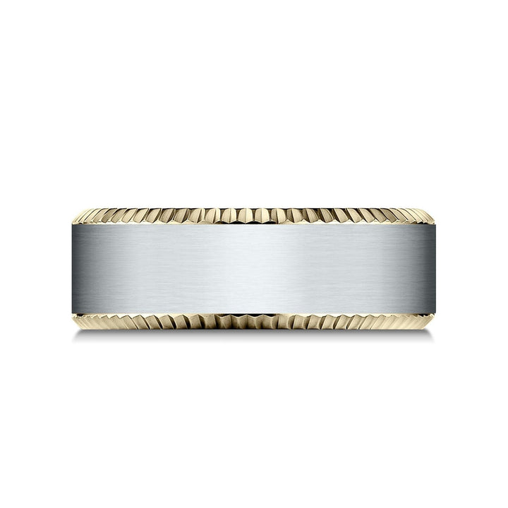 แหวนดีไซน์ขอบเหรียญผิวด้านตรงกลางแบบสวมใส่สบาย 8 มม. สองโทนสี 14k