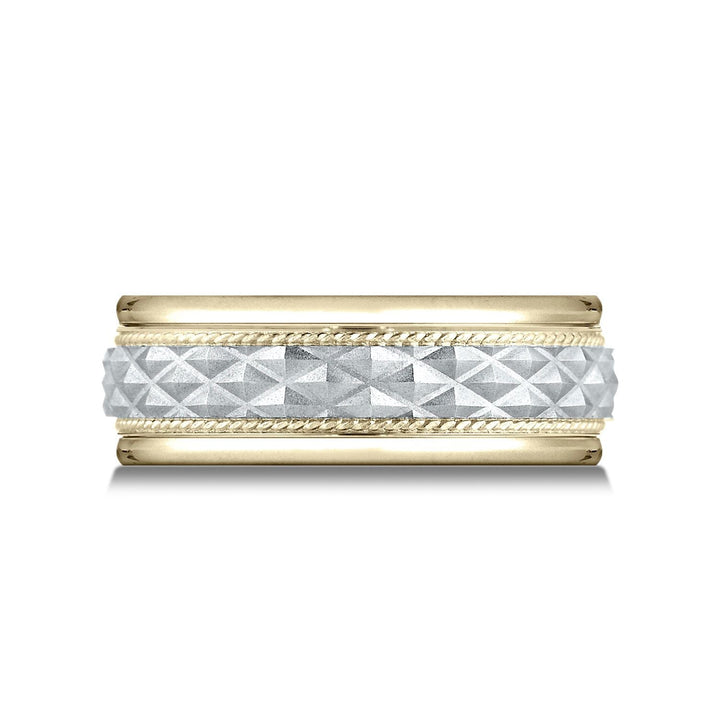 แหวนลายตัดขวางขอบกลมสวมใส่สบาย 8 มม. สองโทนสี 14k