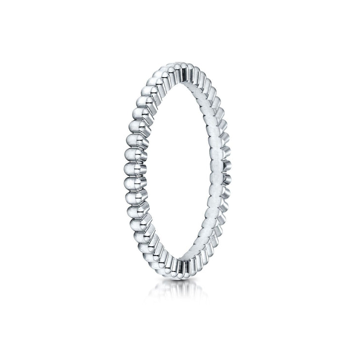 แถบสีขาว 14 กะรัต ขนาด 2 มม. นี้มีรายละเอียดเกียร์เพื่อรูปลักษณ์ที่ทันสมัยและเป็นผู้หญิง