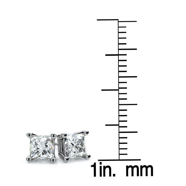 ต่างหูเพชรทรงเจ้าหญิง 4 กรง 14 กะรัต ทองคำขาว (น้ำหนักรวม 0.75 กะรัต, ความสะอาด Vs1-vs2, สี H-i)