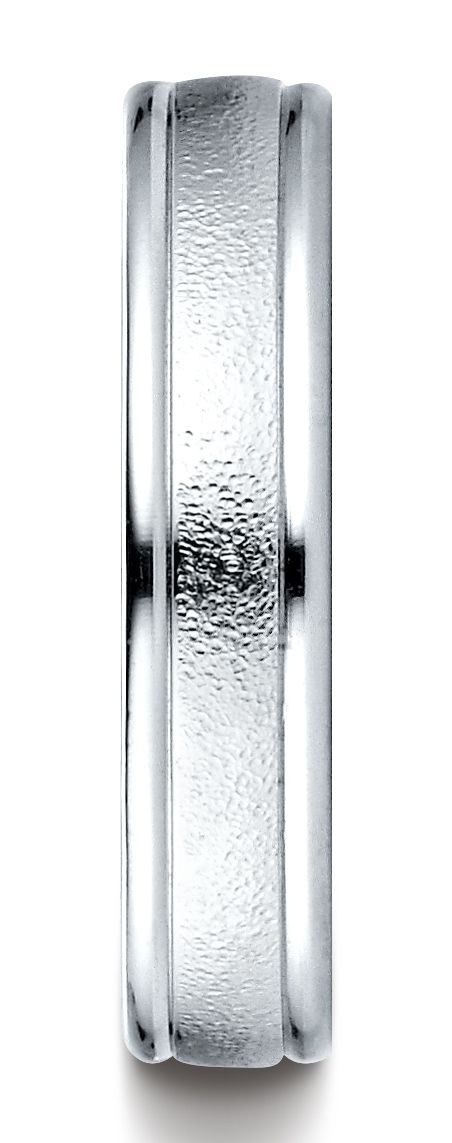 แหวนดีไซน์แกะสลักขนาด 4 มม. แบบสวมใส่สบาย ทำจากทองคำขาว 14 กะรัต มีขอบกลมขัดเงาสูงและพื้นผิวแบบลวดลายสำหรับสไตล์ที่โดดเด่น