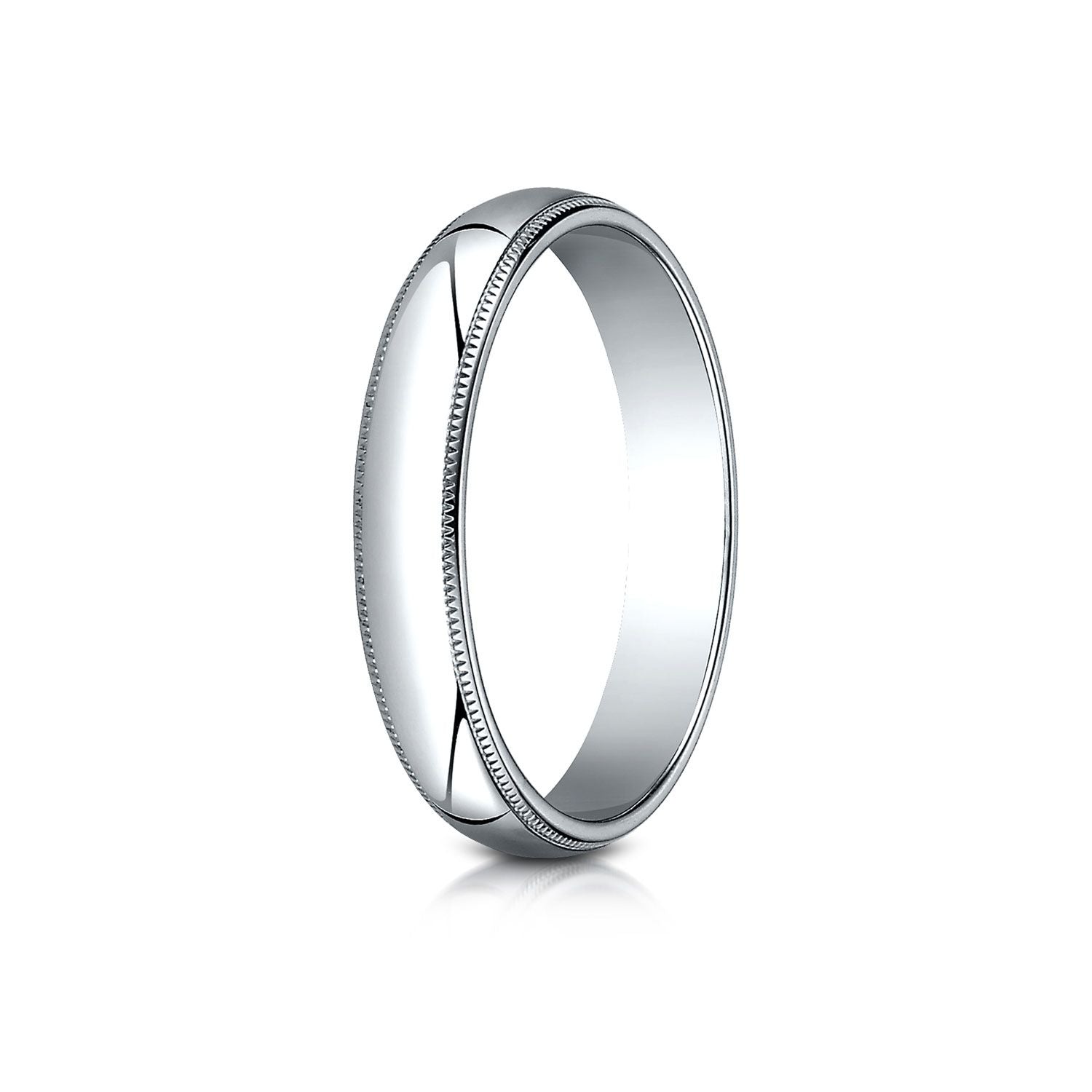 แหวนวงรีแบบดั้งเดิม 14k ทองคำขาว ขนาด 4 มม. โค้งนูนเล็กน้อย พร้อมลายมิลเกรน