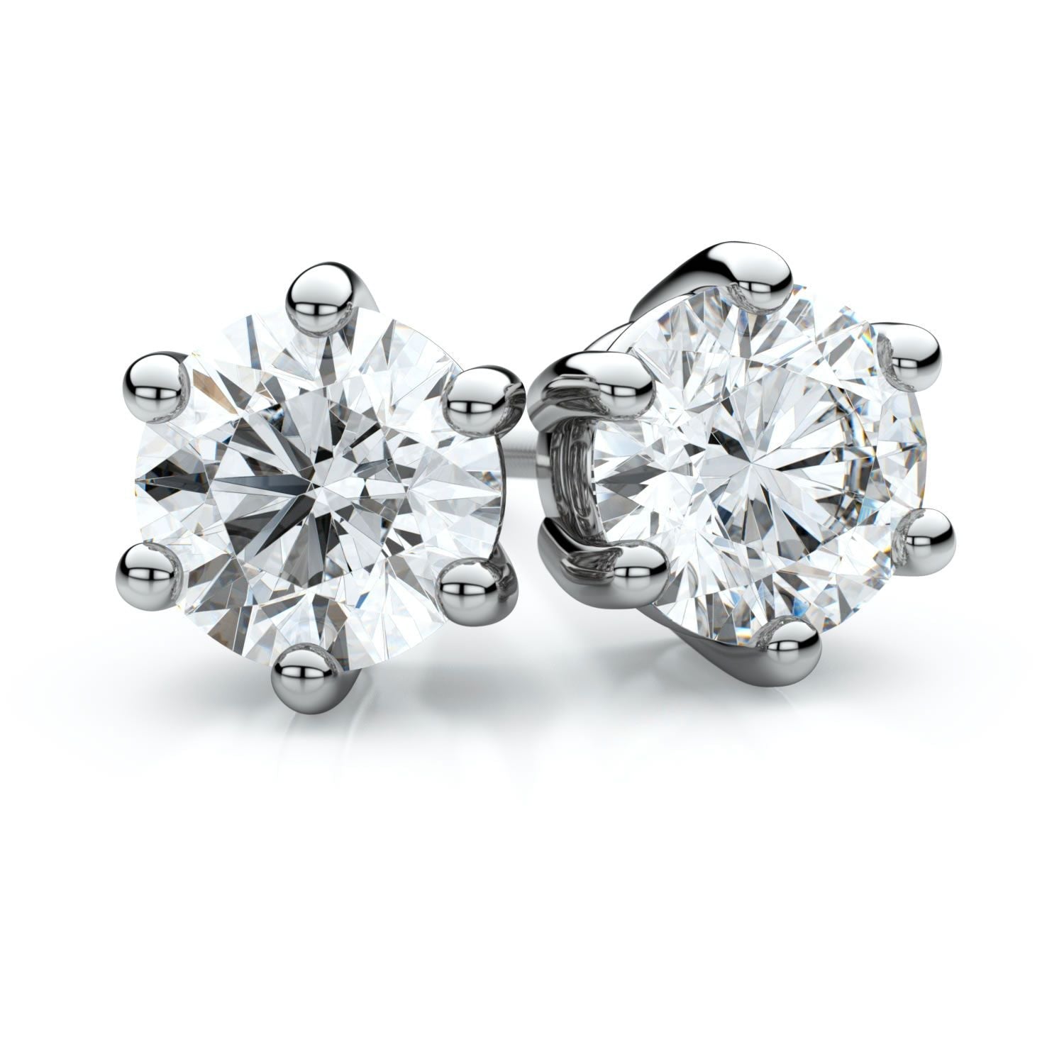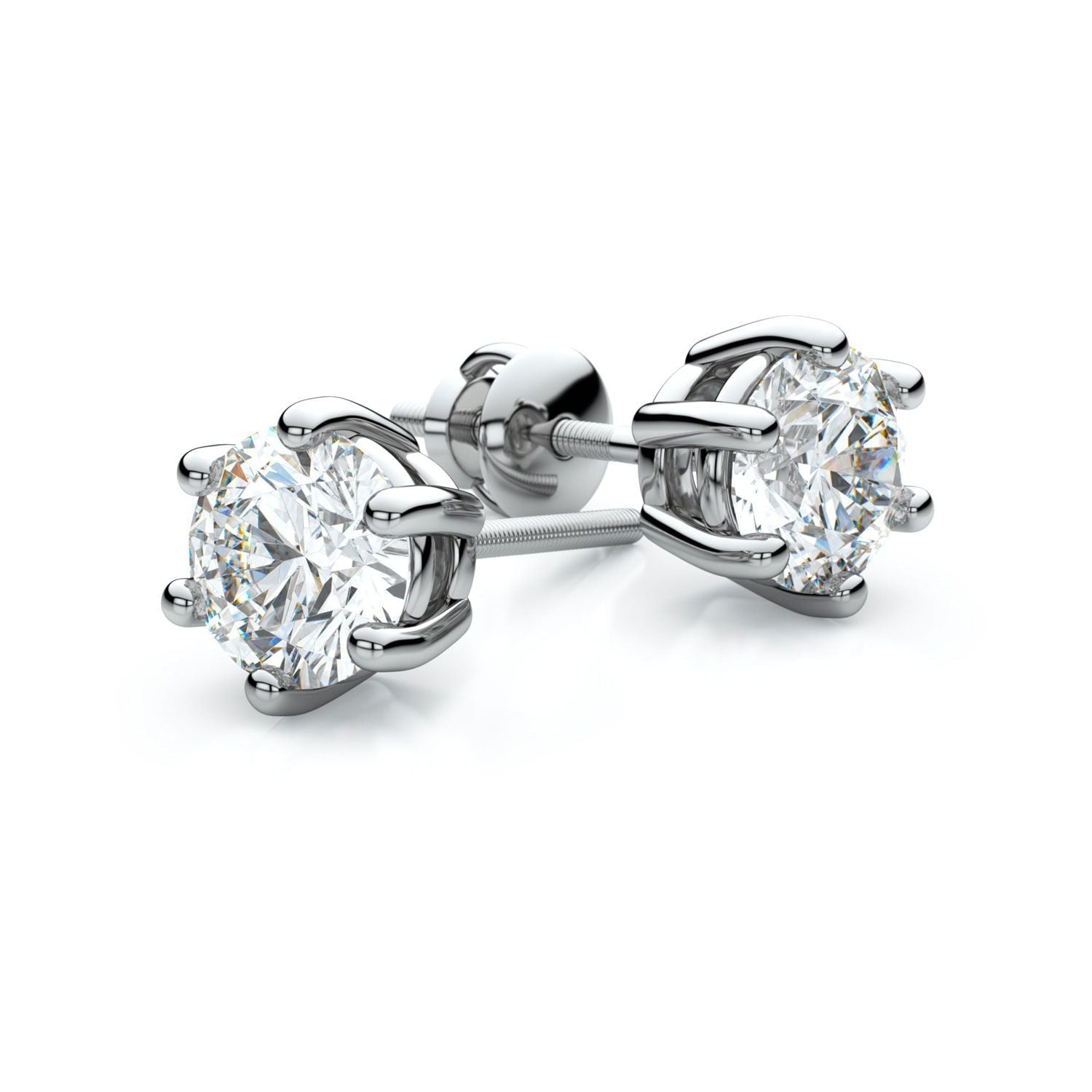 ต่างหูเพชรทรงกลมเจียระไนแบบ 6 กรง 14k ทองคำขาว (น้ำหนักรวม 0.25 กะรัต, ความสะอาด Si1-si2, สี H-i)