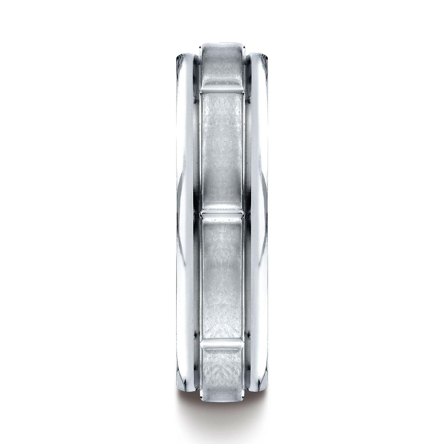แหวนดีไซน์แกะสลักสีขาว 14 กะรัต ขนาด 6 มม. แบบสวมใส่สบาย ผิวด้านซาติน มีขอบกลมขัดเงาสูงสวยงาม พร้อมร่องแนวตั้งขัดเงา 8 ร่องตรงกลางแหวน