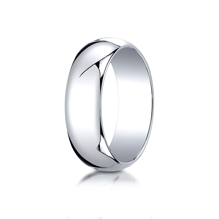 แหวนวงรีแบบดั้งเดิม 14k ทองคำขาว หนา 7 มม. โค้งเล็กน้อย