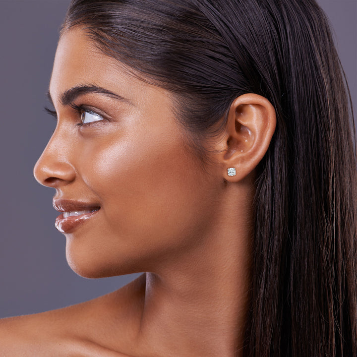 ต่างหูเพชรทรงกลมเจียระไนแบบ 8 กรงเล็บทองคำขาว 14 กะรัต (น้ำหนักรวม 1 กะรัต, ความสะอาด Si1-si2, สี J-k)