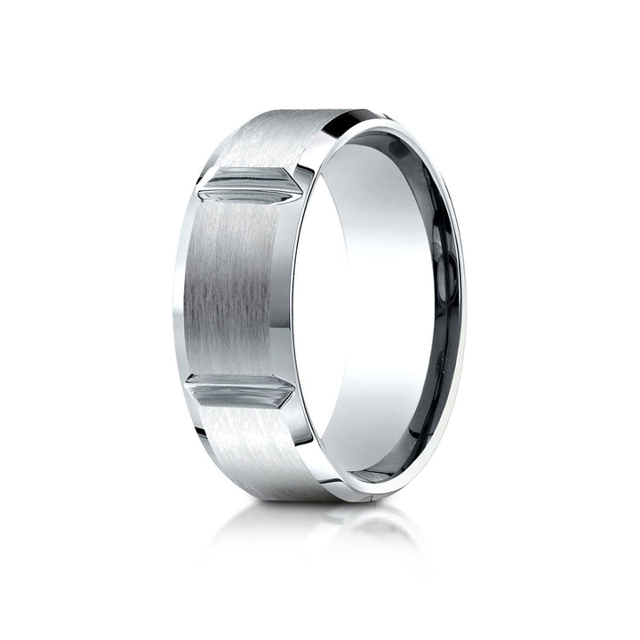 แหวนดีไซน์สลักร่องผิวด้านแบบสวมใส่สบาย ขนาด 8 มม. ทองคำขาว 14 กะรัต