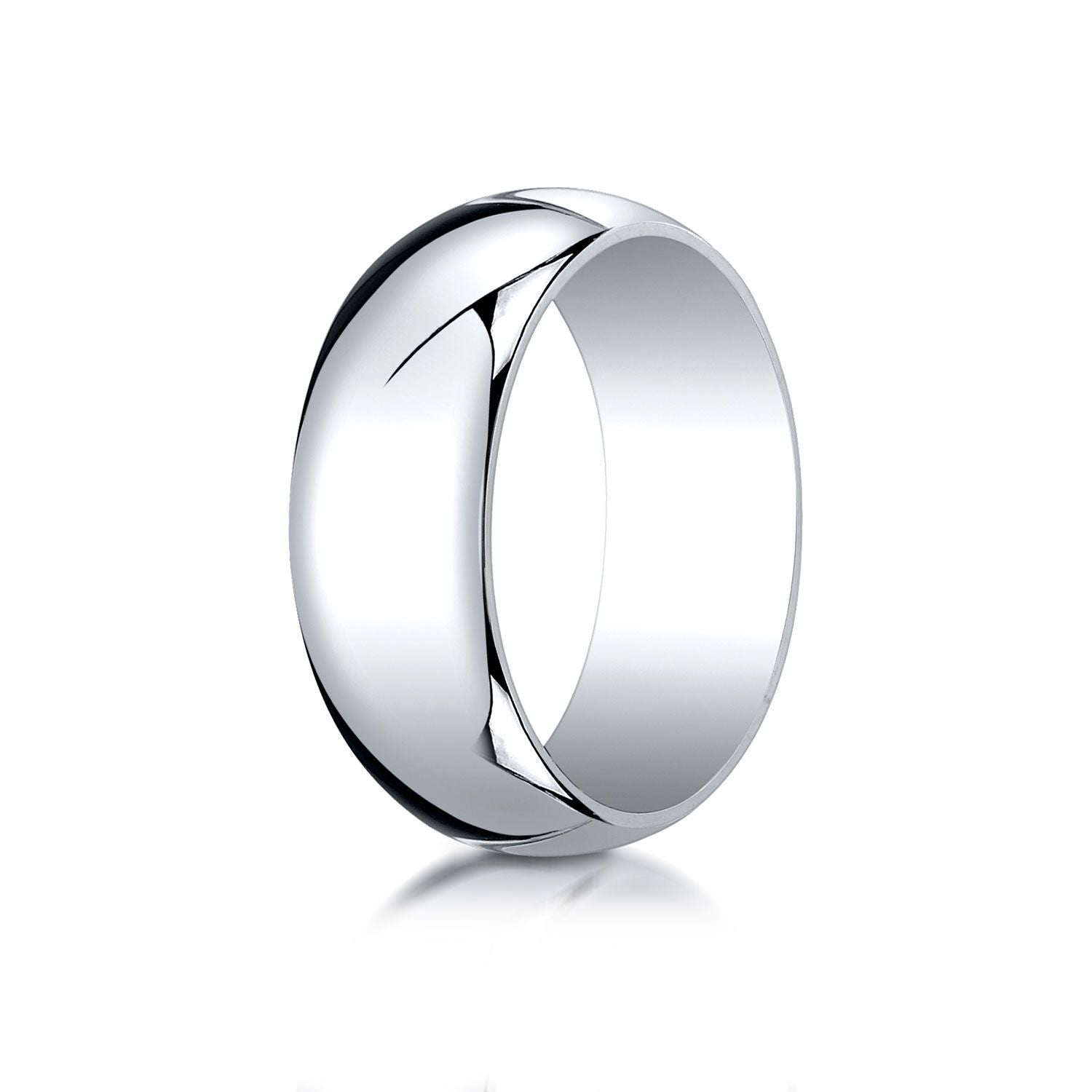 แหวนวงรีแบบดั้งเดิม 14k ทองคำขาว ขนาด 8 มม. โค้งนูนเล็กน้อย
