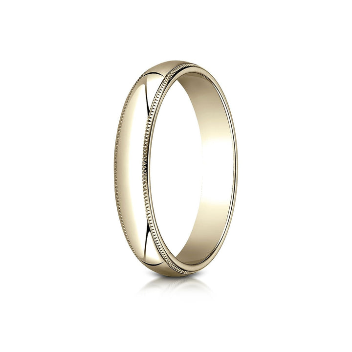 แหวนวงรีแบบดั้งเดิม 14k ทองคำเหลือง ขนาด 4 มม. โค้งเล็กน้อย พร้อมลายมิลเกรน