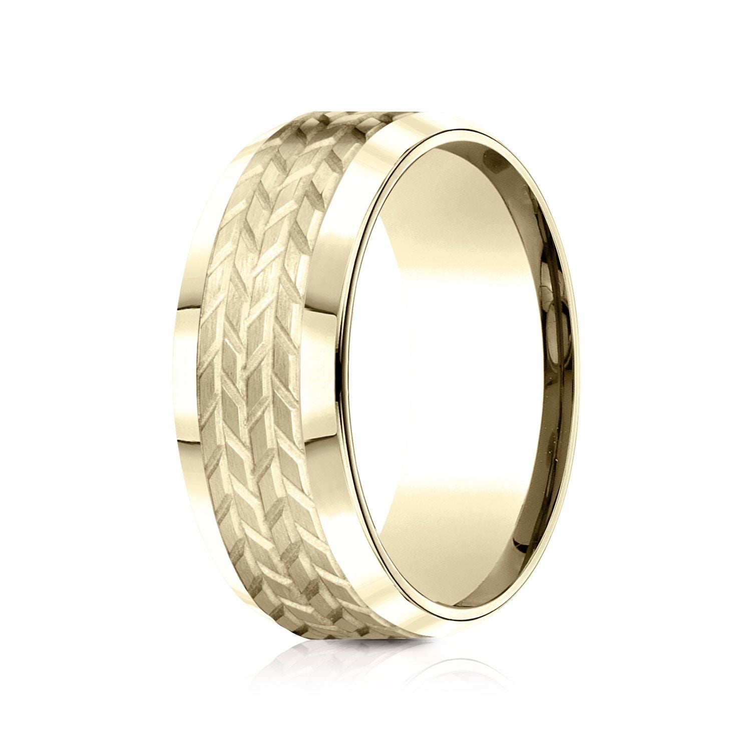 การส่งสัญญาณที่ซับซ้อนถึงความรักของคุณที่มีต่อเครื่องจักรประสิทธิภาพสูง แหวนวงนี้ทำจากทองคำ 14 กะรัต สีเหลือง ขนาด 8 มม. แบบสวมใส่สบาย มีลวดลายร่องยางที่สวยงาม พร้อมขอบเอียงขัดเงาสูง