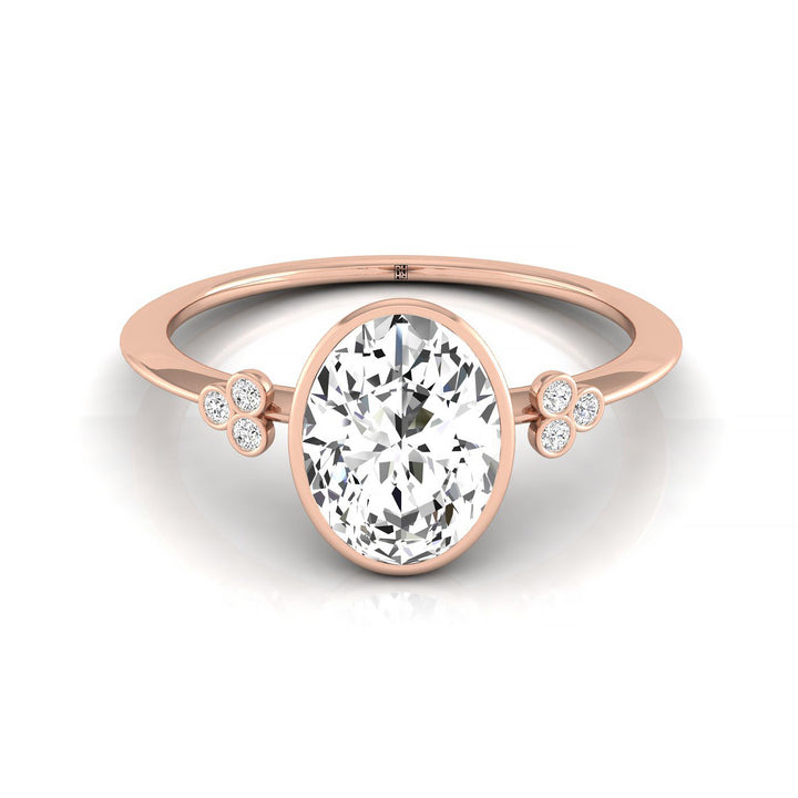 แหวนหมั้นรูปวงรีแบบขอบ 14kr พร้อมเพชรรูปใบโคลเวอร์ 6 เม็ดแบบขอบกลมบนวงแหวน