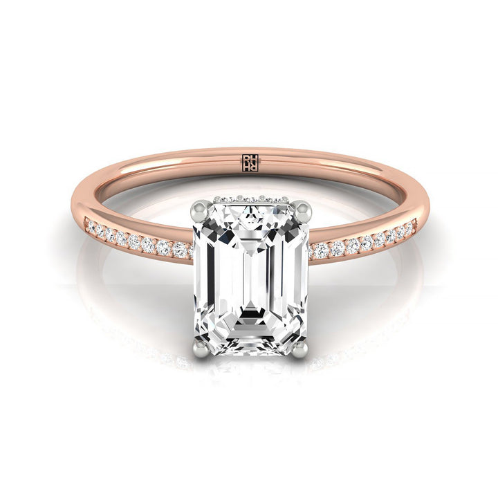 แหวนหมั้นมรกต 14 กะรัต พร้อมฮาโลซ่อนสูงและเพชรรูปกลม 34 เม็ดแบบตั้งด้วยกรงเล็บ