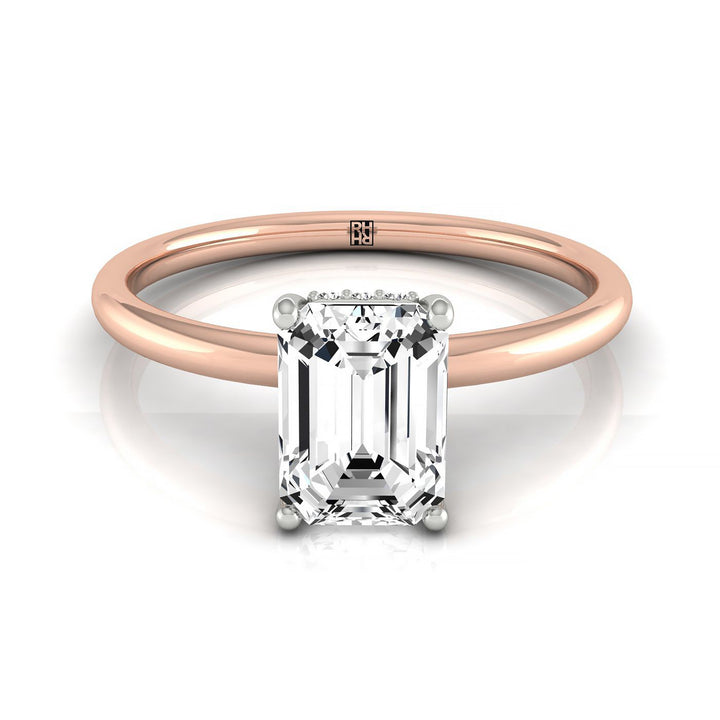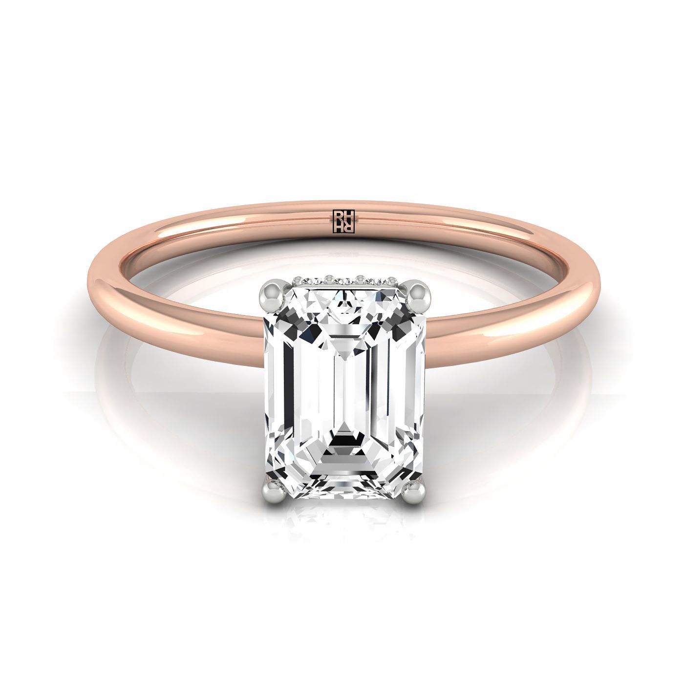 แหวนหมั้นเดี่ยวมรกต 14 กะรัต พร้อมฮาโลซ่อนด้านบนและเพชรรอบเม็ดกลม 16 ก้าน