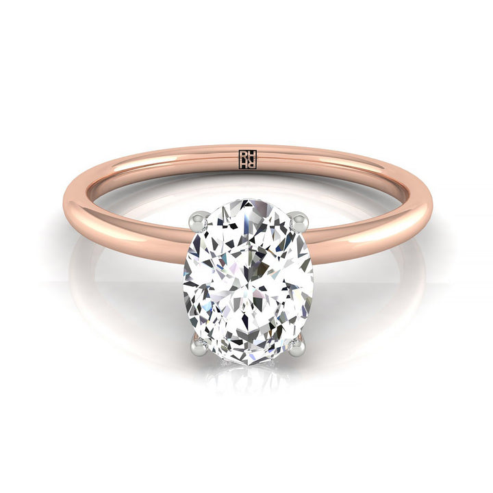 แหวนหมั้นโซลิแทร์รูปวงรี 14 กะรัต พร้อมฮาโลซ่อนด้านบนและเพชรรูปกลม 16 เม็ดแบบหนีบ