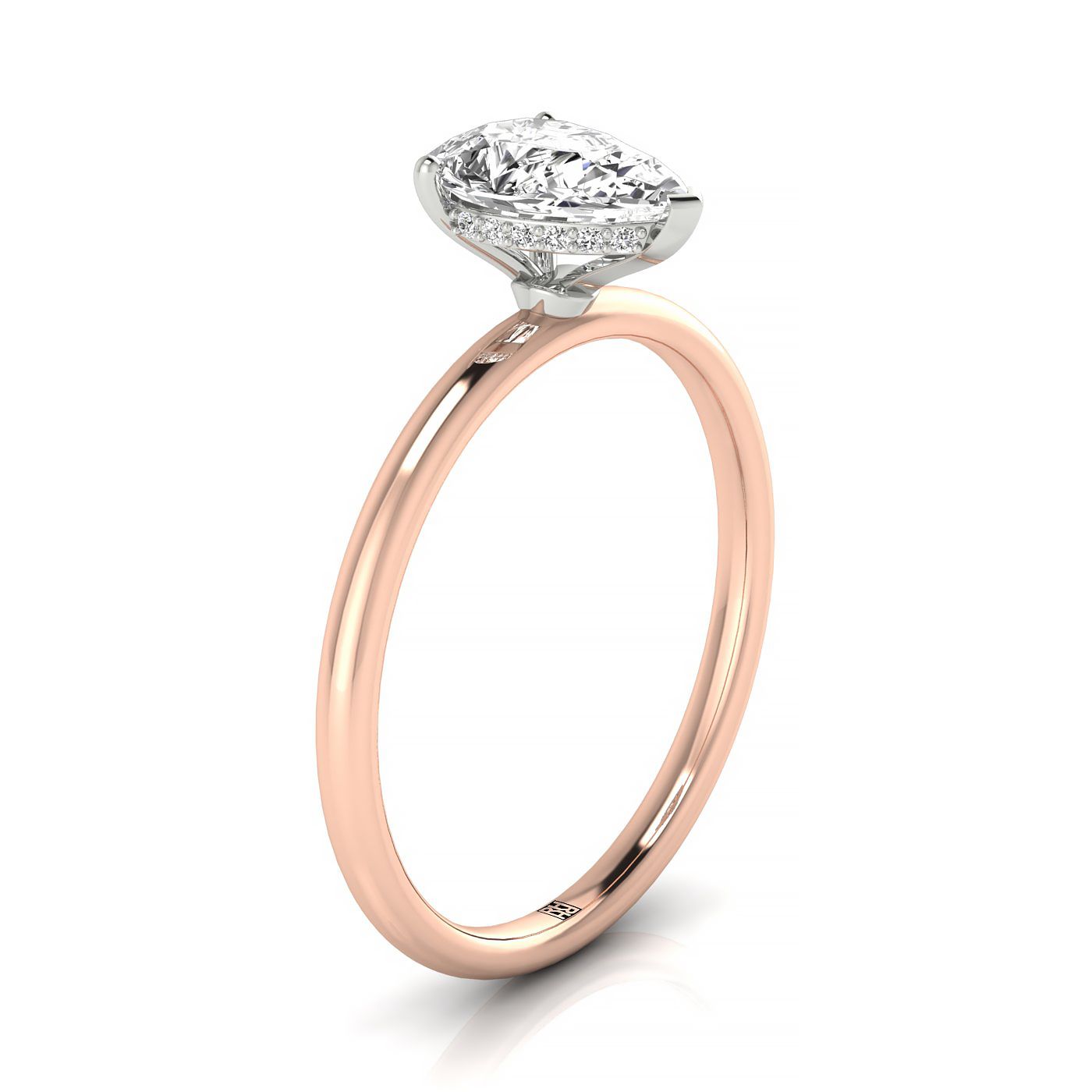 แหวนหมั้นเพชรเม็ดเดี่ยว 14 กะรัต พร้อมฮาโลซ่อนด้านบนและเพชรทรงกลม 16 เม็ดแบบหนีบ