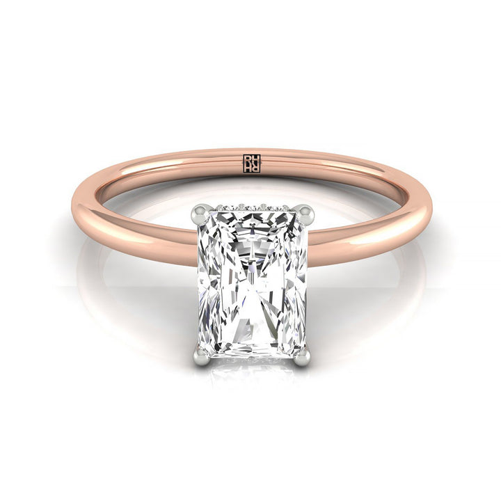 แหวนหมั้นเดี่ยวแบบโซลิแทร์ 14kr Radiant Double Hidden Halo พร้อมเพชรรอบเม็ดกลม 32 เม็ดแบบตั้งกรงเล็บ
