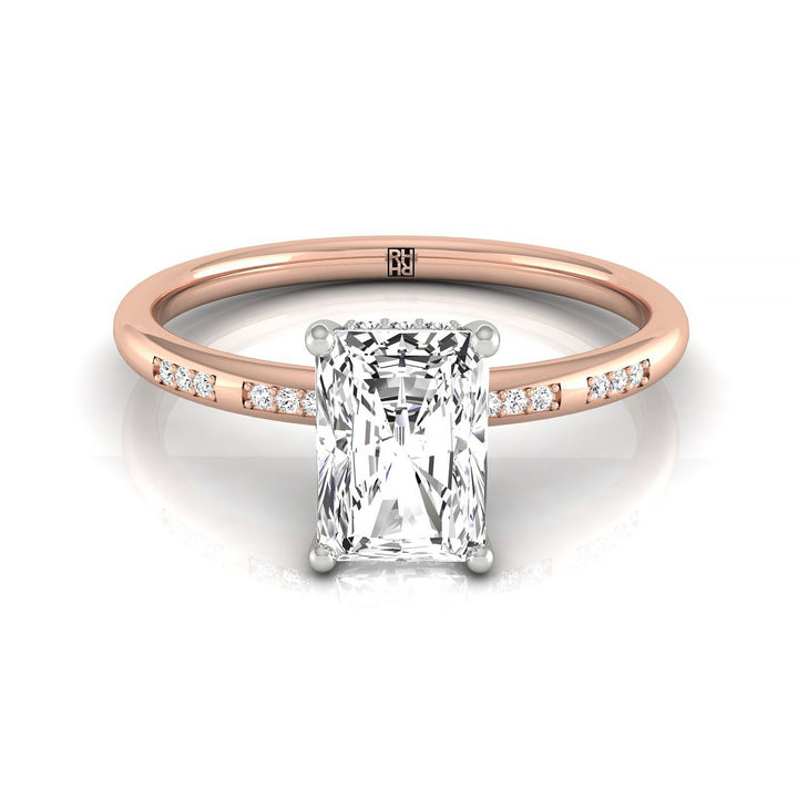 แหวนหมั้นเรเดียนท์ 14kr พร้อมฮาโลซ่อนสูงและเพชรรอบแบบตั้งด้วยกรง 36 กรง