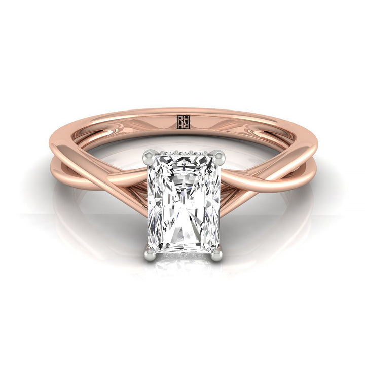 แหวนหมั้นเดี่ยว 14kr Radiant Twisted Shank ซ่อนฮาโล พร้อมเพชรรอบกลม 24 กรง
