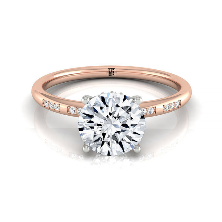 แหวนหมั้นทรงกลม 14kr พร้อมฮาโลซ่อนสูงและเพชรรูปทรงกลม 26 เม็ดแบบตั้งด้วยกรง