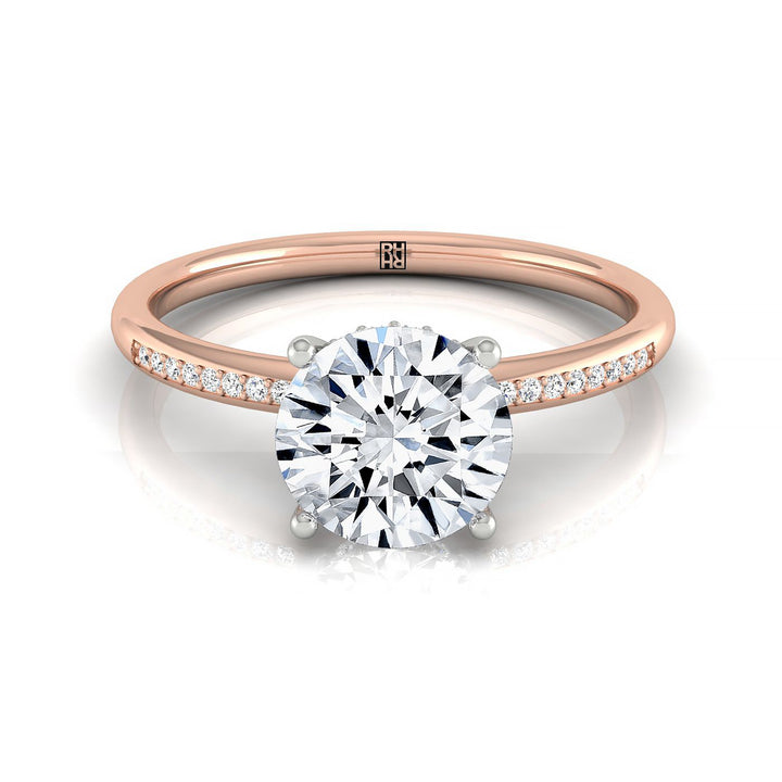 แหวนหมั้นทรงกลม 14kr พร้อมฮาโลซ่อนสูงและเพชรรูปกลม 32 เม็ดแบบตั้งด้วยกรงเล็บ