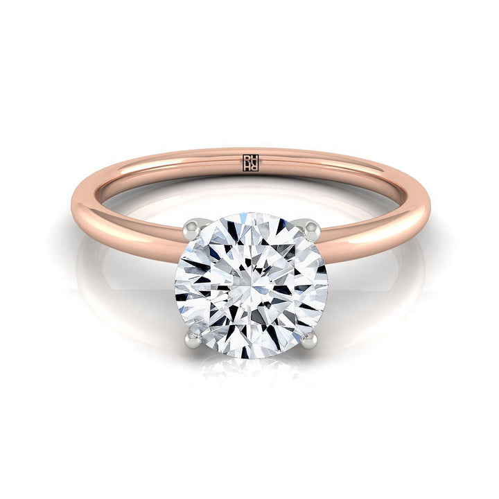 แหวนหมั้นเดี่ยวทรงกลม 14 กะรัต พร้อมฮาโลลับด้านล่างโค้งและเพชรรูปกลม 8 กรง