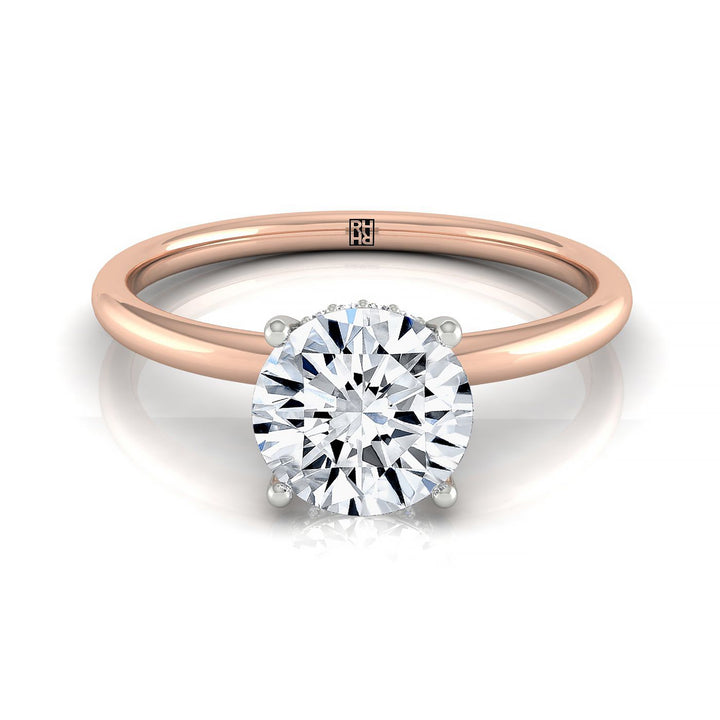 แหวนหมั้นเดี่ยวทรงกลม 14 กะรัต พร้อมฮาโลซ่อนด้านบนและเพชรทรงกลม 16 ก้าน