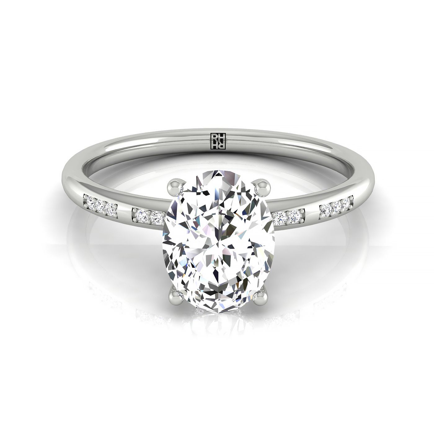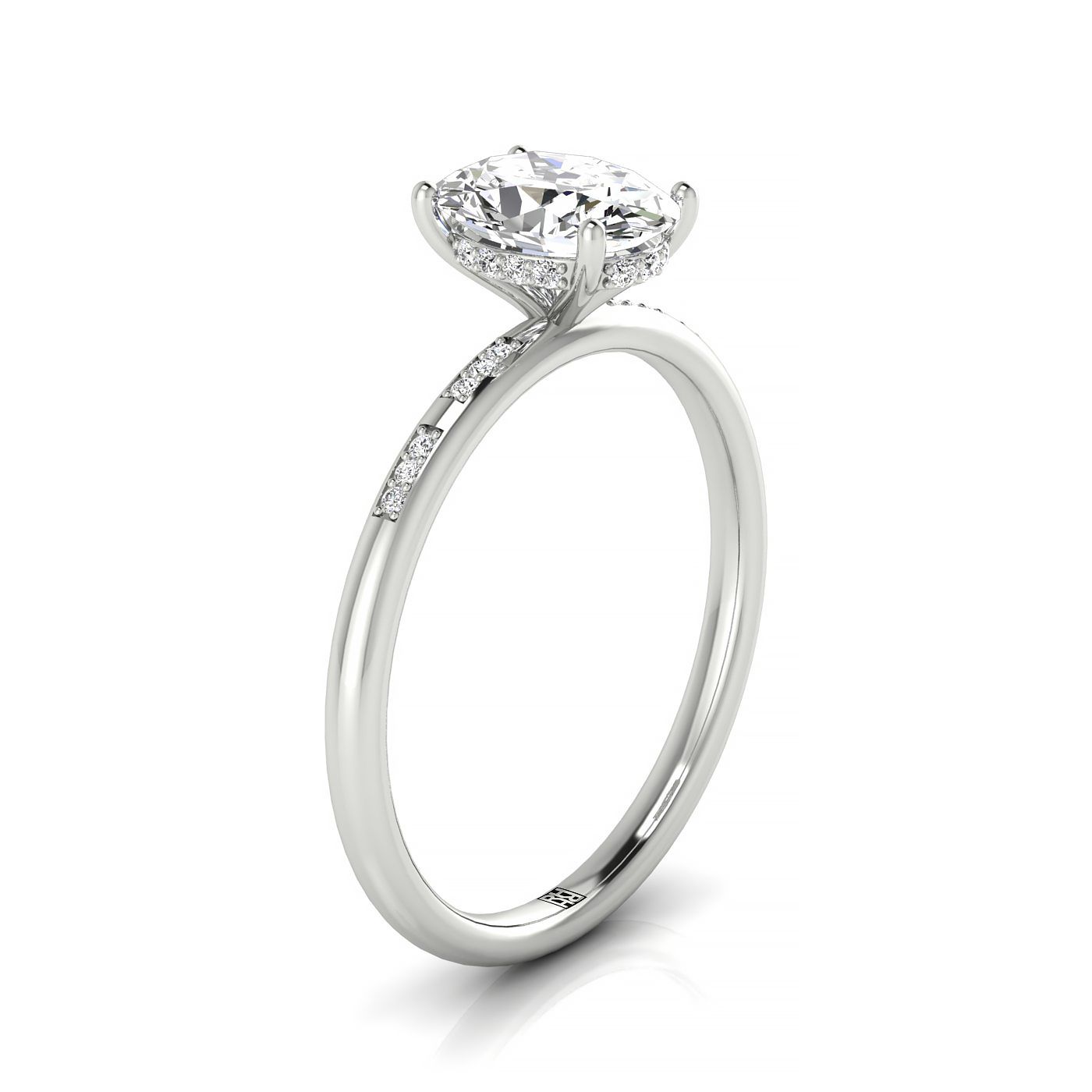 แหวนหมั้นรูปวงรี 14kw พร้อมฮาโลซ่อนสูงและเพชรรูปกลม 26 เม็ดแบบตั้งด้วยกรงเล็บ