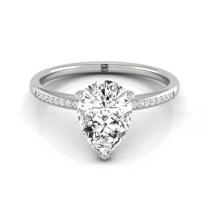 แหวนหมั้นรูปทรงลูกแพร์ 14kw พร้อมฮาโลซ่อนสูงและเพชรรูปกลม 35 เม็ดแบบตั้งกรง