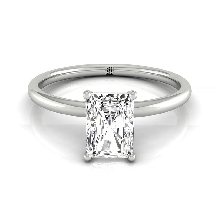 แหวนหมั้นโซลิแทร์เรเดียนท์ 14kw พร้อมฮาโลซ่อนและเพชรรอบแบบตั้ง 8 ก้าน