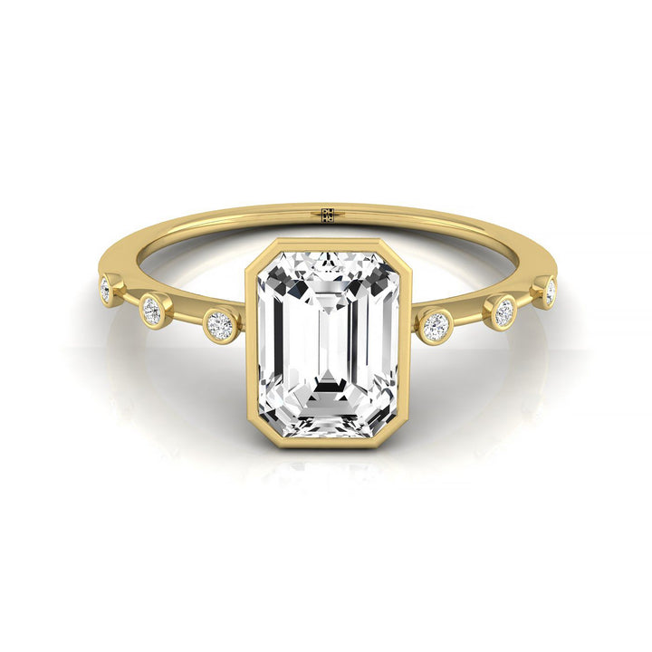 แหวนหมั้นมรกตแบบตั้งขอบ 14ky พร้อมเพชรรอบกลม 6 เม็ดแบบตั้งขอบบนวงแหวน