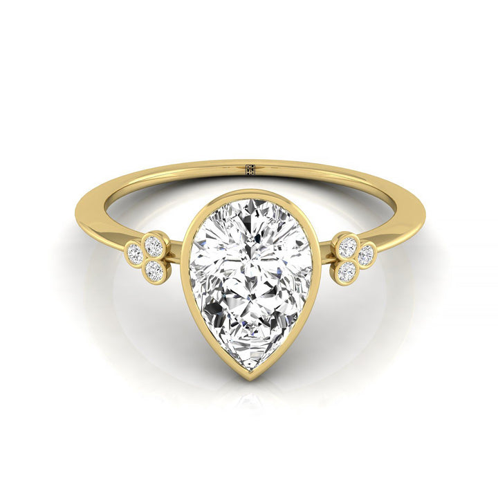 แหวนหมั้นทรงลูกแพร์แบบขอบ 14ky พร้อมเพชรรูปกลม 6 เม็ดแบบขอบโคลเวอร์บนวงแหวน