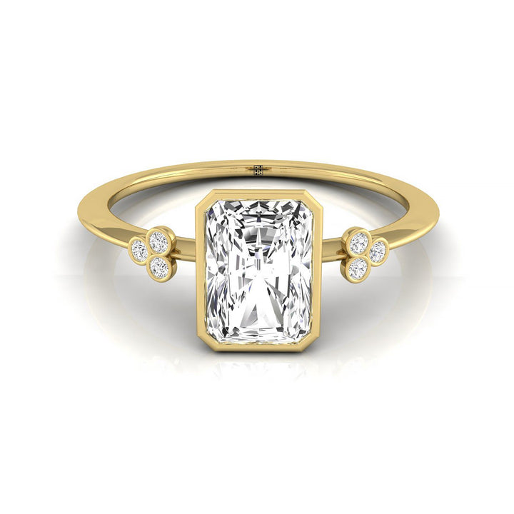 แหวนหมั้นแบบเรเดียนท์ฝังขอบ 14ky พร้อมเพชรรูปใบโคลเวอร์ 6 เม็ดฝังขอบทรงกลมบนวงแหวน