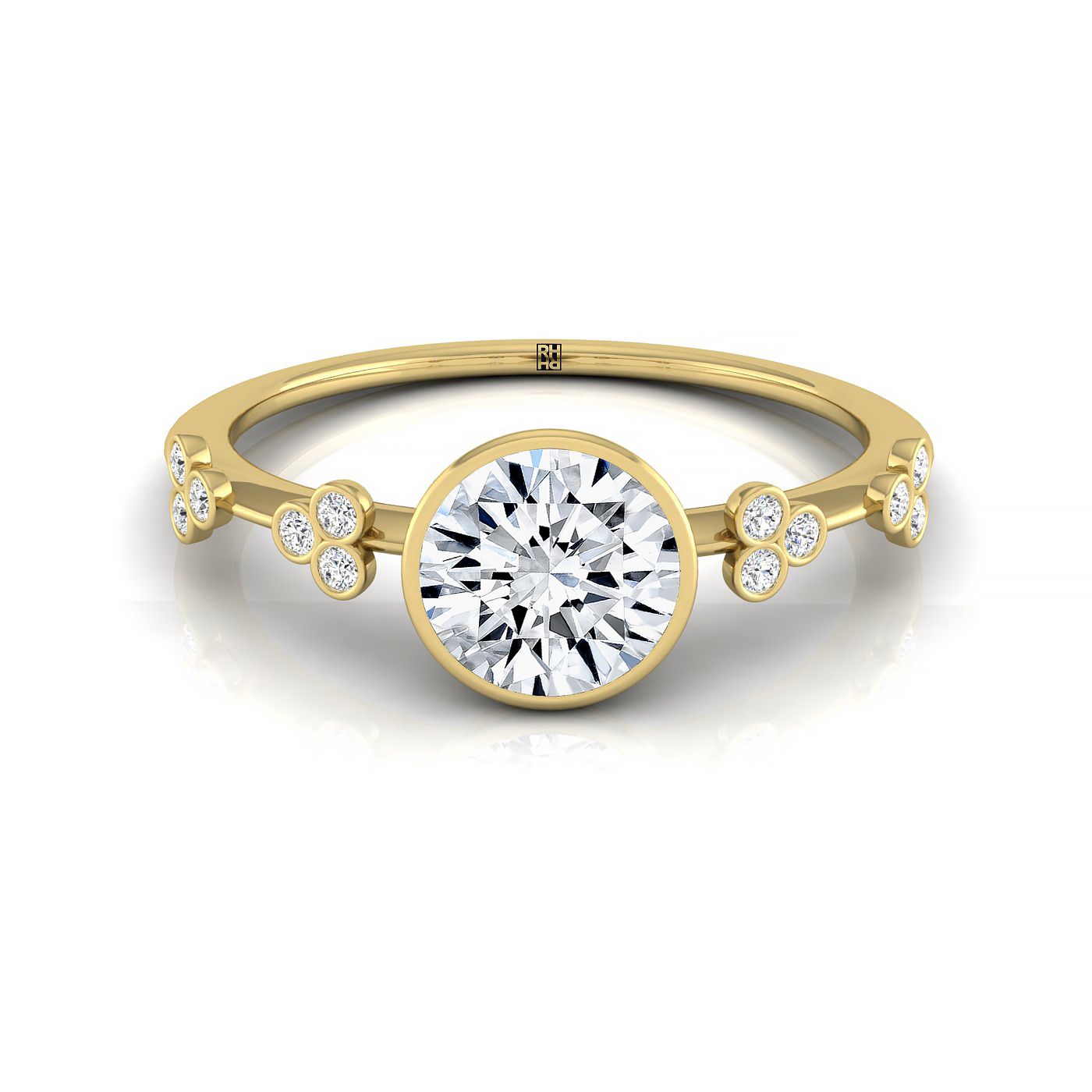 แหวนหมั้นทรงกลมแบบขอบ 14ky พร้อมเพชรทรงกลม 12 เม็ดแบบขอบโคลเวอร์บนวงแหวน