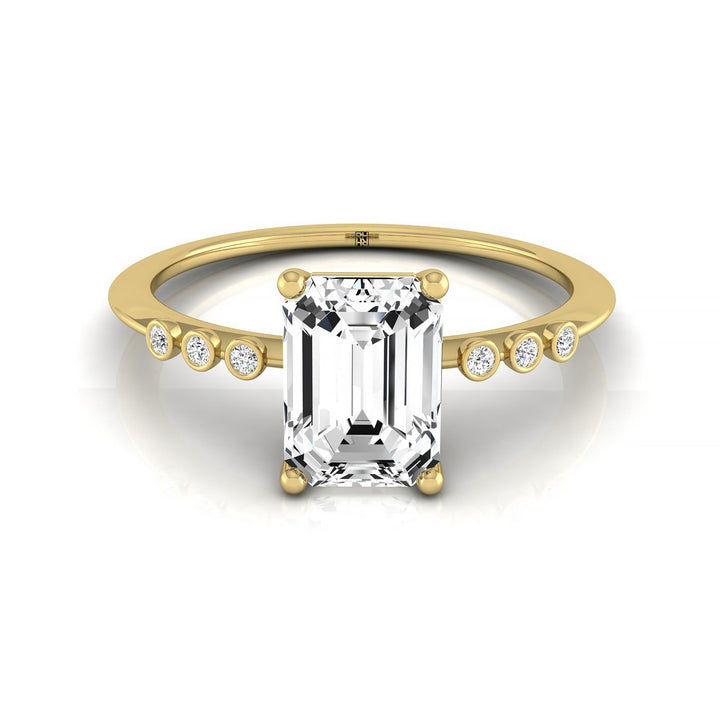 แหวนหมั้นมรกต 14 กะรัตทองคำขาว พร้อมเพชรวงกลม 6 เม็ดแบบบีเซลบนวงแหวน
