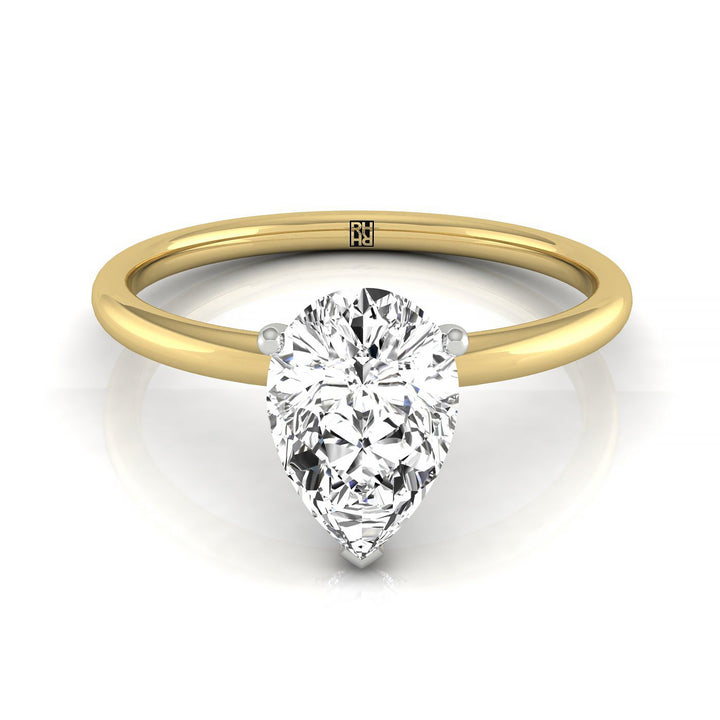 แหวนหมั้นแบบโซลิแทร์ทรงลูกแพร์ 14ky พร้อมฮาโลซ่อนและเพชรรูปกลมแบบตั้งด้วยกรง 8 กรง