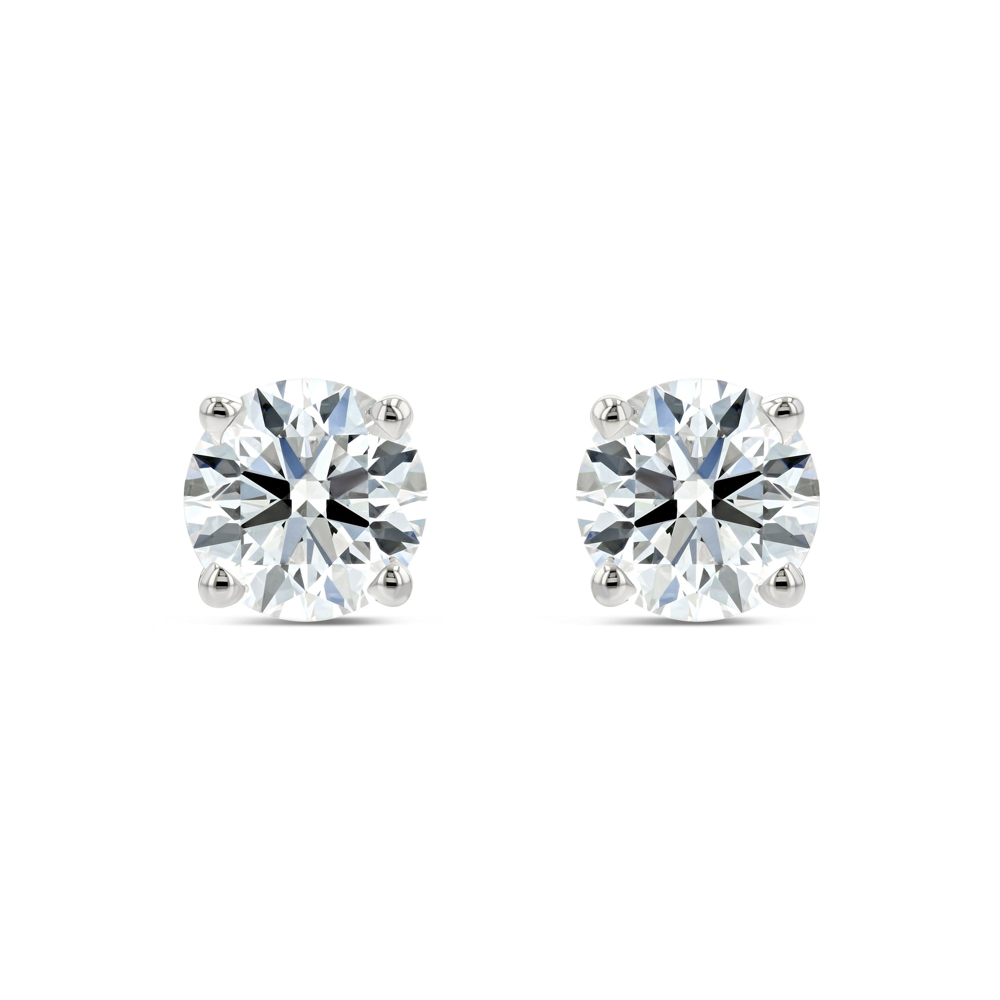 ต่างหูเพชรทรงกลมเจียระไนแบบ 4 กรงเล็บทองคำขาว 18 กะรัต (น้ำหนักรวม 1.06 กะรัต, ความใส Vs1-vs2, สี F-g)