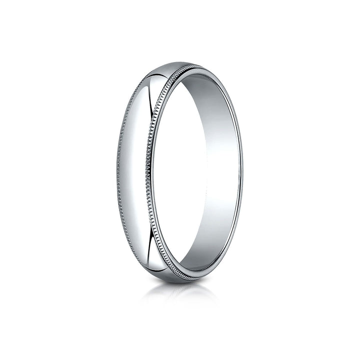 แหวนวงรีแบบดั้งเดิม 18k ทองคำขาว ขนาด 4 มม. โค้งนูนเล็กน้อย พร้อมลายมิลเกรน