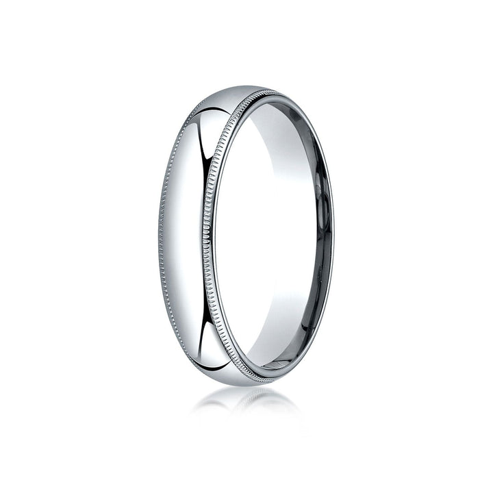 แหวนทองคำขาว 18k ขนาด 5 มม. แบบโค้งเล็กน้อย ดีไซน์สวมใส่สบายมาตรฐาน พร้อมขอบมิลเกรน