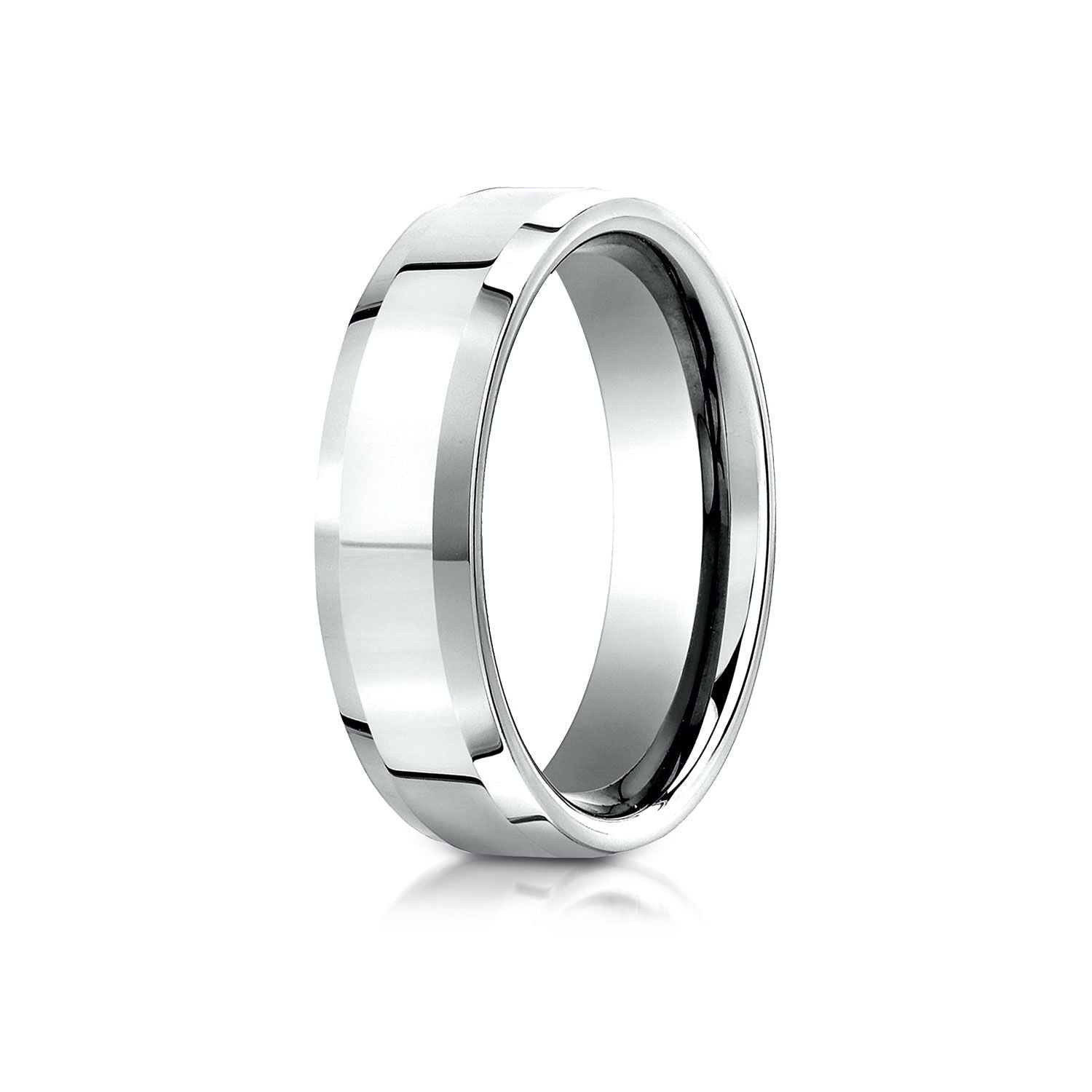 แหวนดีไซน์แกะสลักขัดเงาสูงสีขาว 18 กะรัต ขนาด 6 มม. แบบสวมใส่สบาย มีขอบเอียงเล็กน้อยเพื่อรูปลักษณ์คลาสสิก