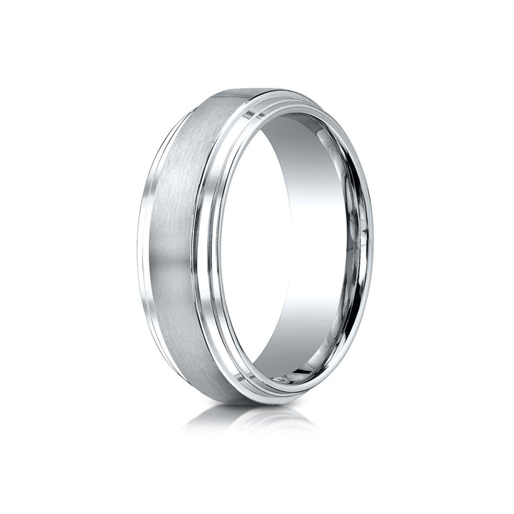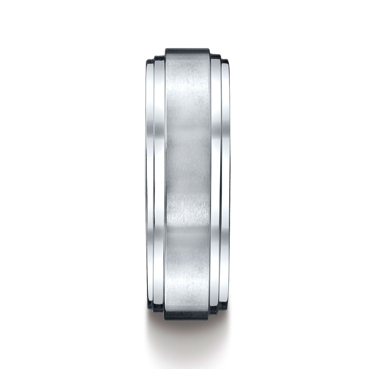แหวนดีไซน์สลักขอบขั้นแบบ Satin ขนาด 8 มม. สีขาว 18 กะรัต แบบสวมใส่สบาย มอบลุคคลาสสิก แต่มีโปรไฟล์แบนสมัยใหม่