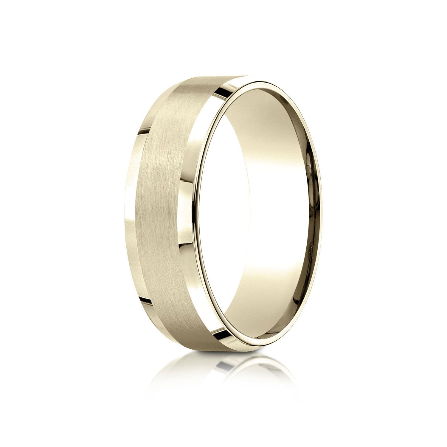 แหวนทองคำ 18k สีเหลือง ขนาด 7 มม. แบบสวมใส่สบาย ผิวด้านพร้อมขอบเอียงขัดเงาสูง พร้อมลวดลายสลัก
